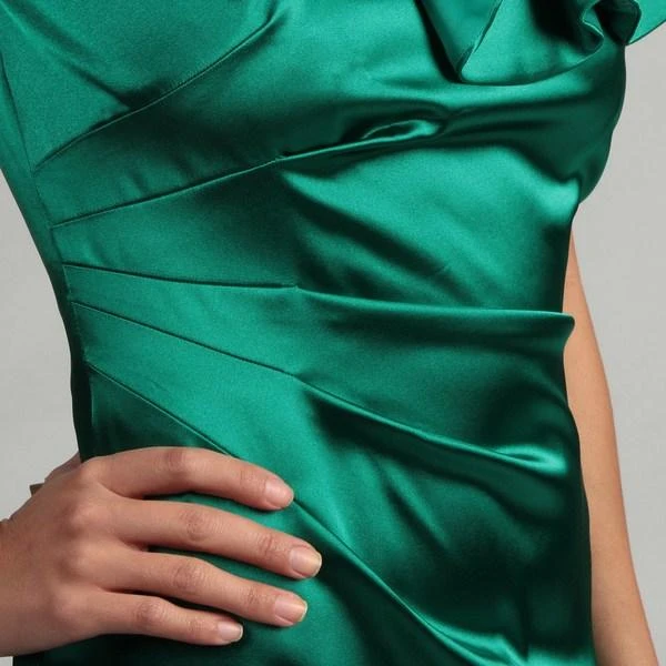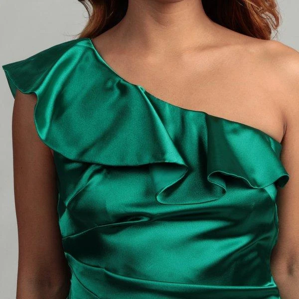 Make an appearance at your party with a stunning flair in this Hailey by Adrianna Papell 231M19610 creation. Gleaming with luxury on a stretch satin fabric, this chic piece shows an asymmetrical neckline with a ruffled panel. Crafted with a slated back, this ensemble shows lovely pintucks along the side while draping down to a short hemline. Express an eloquent sophistication in this Hailey by Adrianna Papell masterpiece. Models are wearing the Ivory and Emerald colors.
