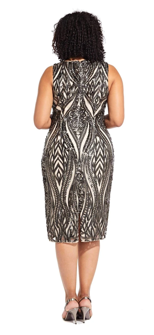 Sparkle from the crowd when you appear in this dazzling piece by Adrianna Papell AP1E204314. This curve-hugging dress showcases a sleeveless bodice topped with a bateau neckline. All over sequins beautify the entirety of this ensemble offering a shimmering look. This dress features a sheath silhouette that tapers to the knee hemline as the full back is secured with a center zipper closure. A slit detail accents the back skirt for ease of movement. You deserve to feel beautiful when you don this Adrianna Papell creation.