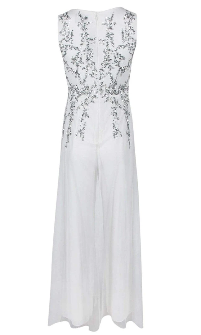 | Details: | Sequin, Sleeveless, Embellishments, Fitted bodice, Leg pants, Back zipper |