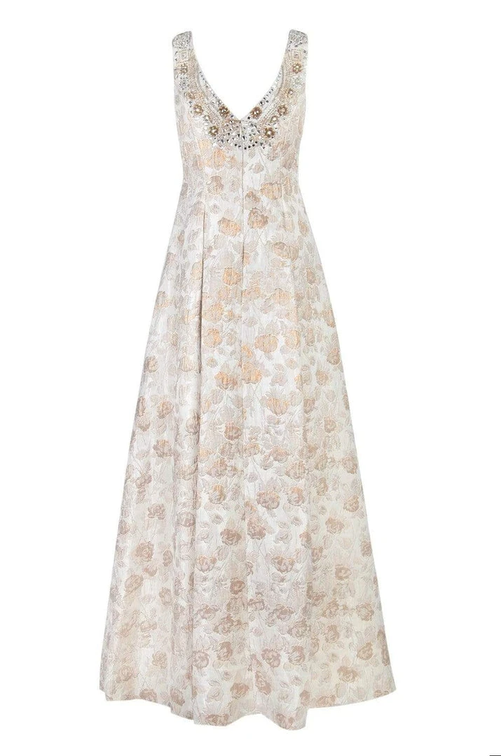 | Details: | Sleeveless, Embellishments, Jacquard, Back zipper, A-line skirt, V-back, Back zipper |