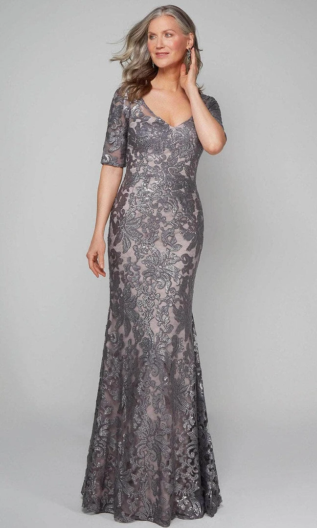 Exude a charm that is meant to mesmerize the elite crowd in this gorgeously decadent Alyce Paris 27491 evening dress. This lovely piece is ornamented with beadwork and embroidery, showcasing a modest V-neckline and mid-rised back secured by a center zipper closure for a perfect fit. Designed with a sheer fabric for a dramatic effect, the skirt creates a fitted silhouette that flows down in a floor length hem. This Alyce Paris masterpiece will let you celebrate that divine feminine beauty! Models are wearing Black & Chateau Grey, and Grey & Pink Alabster colors.