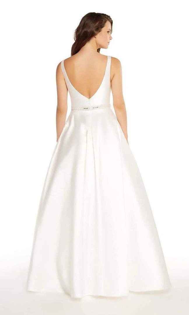 Shine without qualms as you look like a regal vision in this streamlined Alyce Paris 60113 creation. Perfectly sculpted with seams on a lustrous Mikado fabric, this classy number flaunts a bateau neckline paired with a low v-cut open back. Angular cuts along the sides are overlaid with sheer mesh insets. Crowned along the waist in a glistening embrace of jewels, the A-line skirt flaunts exquisite volume as it cascades magnificently down to a captivating full-length hem. Make a lasting impression as you celebrate this dazzling festivity in this Alyce Paris masterpiece. Model is wearing the Diamond White color. Find more evening dresses!