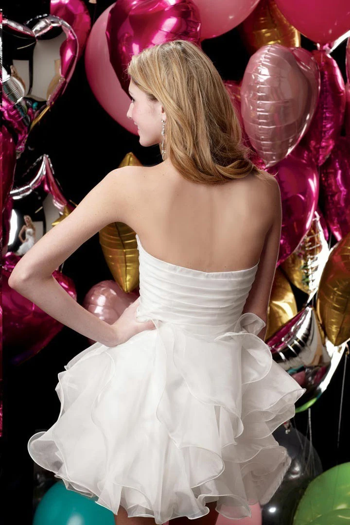 It’s a modern day fairy-tale with this sweet and classic dress from Alyce Paris 3545. Organza fabric gives this feminine cocktail style a soft and airy feeling. Features a strapless, sweetheart neckline with pleated bodice that leads to the flared ruffled, tiered skirt for that playful appeal. This Alyce Paris dress is awesome for prom or for any special night event!