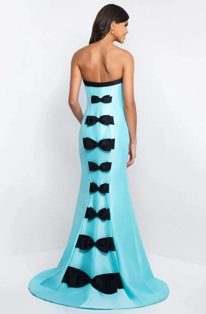 Look every bit like a Parisian beauty as you radiate charm in this dazzling Blush C1046 creation. Impeccably sculpted with seams on a soft Mikado fabric, this fascinating piece reveals a strapless modified sweetheart neckline accented with a contrasting band and bow accent. The mermaid skirt forms a flaring flute before creating an amazing finish from knees to a full-length silhouette. Glamorously flourishing contrasting ribbon accents trailing from the mid-open back down to a sweeping train that pools impeccably down to a sweeping train. Shine like the glamorous siren that you are at your upcoming party in this Blush masterpiece.