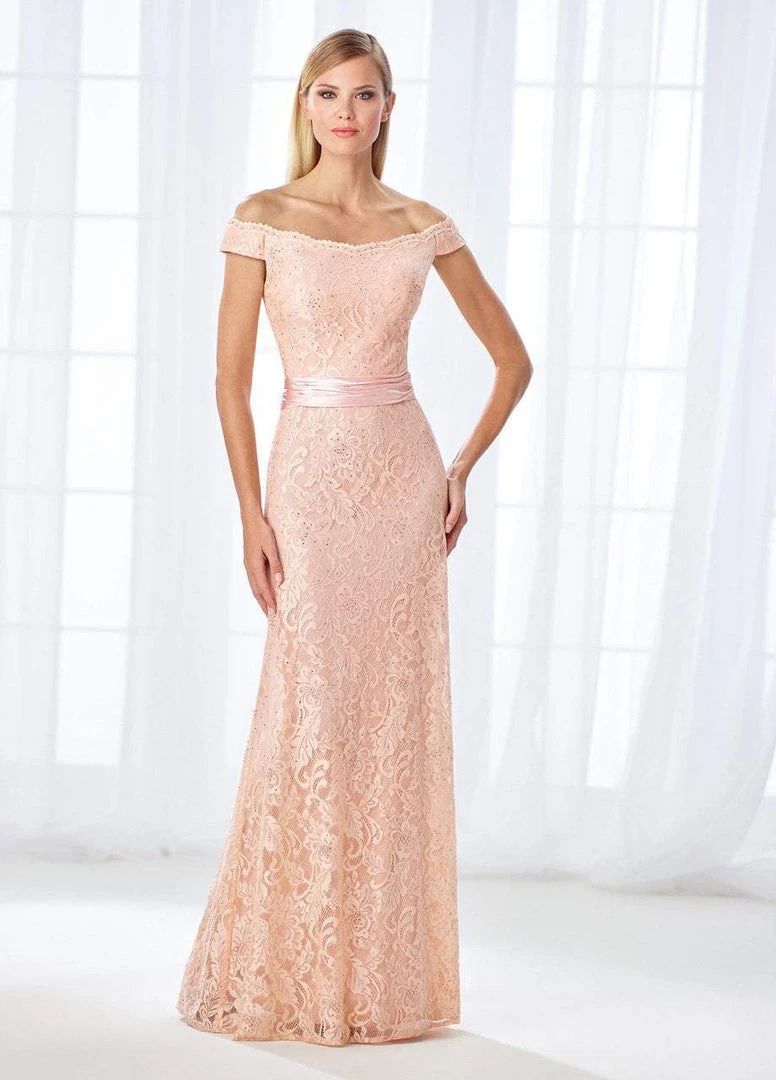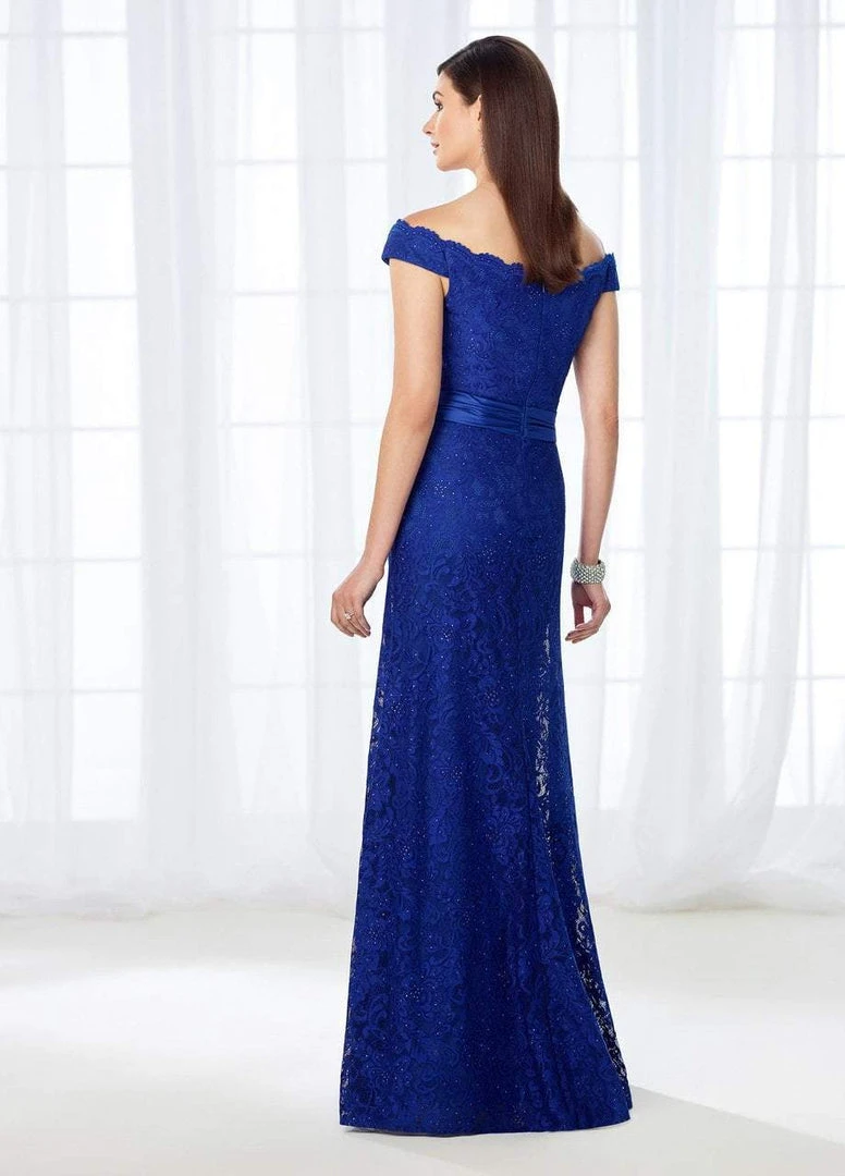 Glamour gets gorgeous with this Cameron Blake 118670 evening dress. Fashioned in beaded lace with a scalloped off-the-shoulder neckline, this dress is accented with sparkling heat set stones from top to bottom. A ruched satin waistband sets the sheath skirt to a full length hem. This Cameron Blake style is sure to create a striking look and make anyone remember your grand entrance.