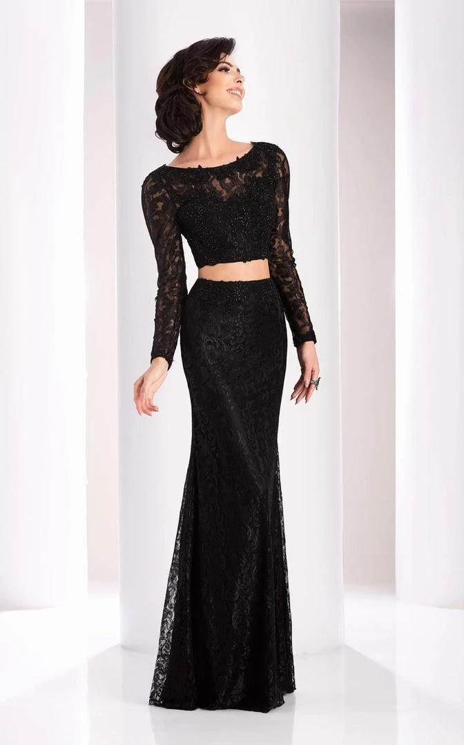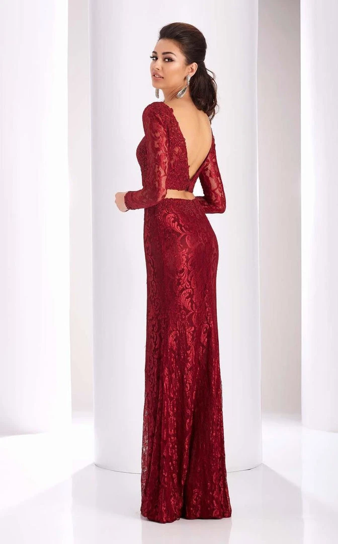Look jaw dropping in this dramatic dress by Clarisse 3218. Elegant lace fitted two piece dress with long sleeves and deep V back. This dress also has a sweetheart bodice design that makes this dress even more attractive. This creation by Clarisse is sure to be an attention-grabber in any occasion.