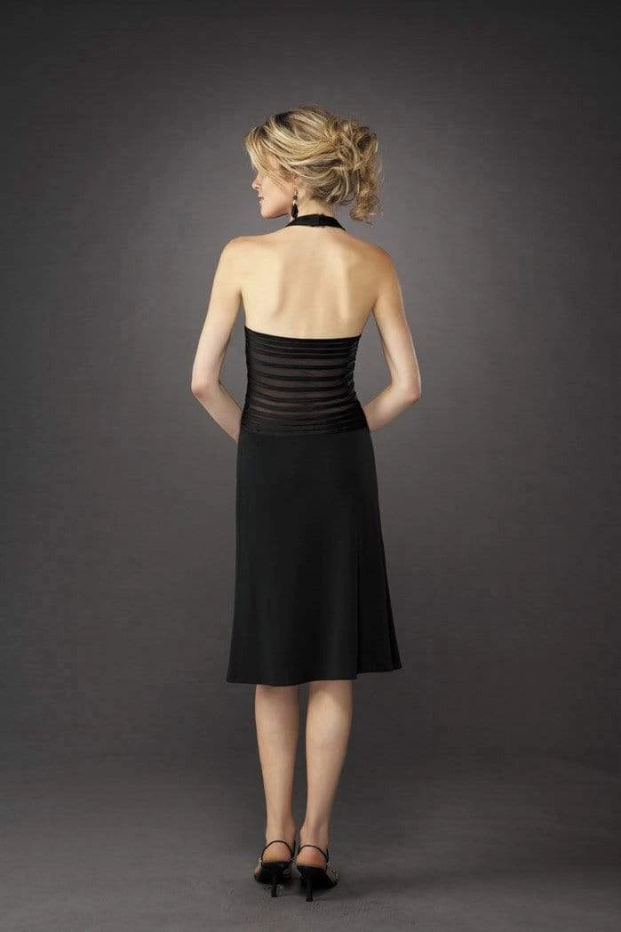 Flatter your figure with this eccentric design by La Femme 12722. This dress shows a surplice halter bodice with a partly sheer crisscross waistband. Accented with a mid-open back with a stripe rendering, the knee length A-line skirt reveals a soft flare. Look truly amazing and confidently beautiful in this La Femme masterpiece.