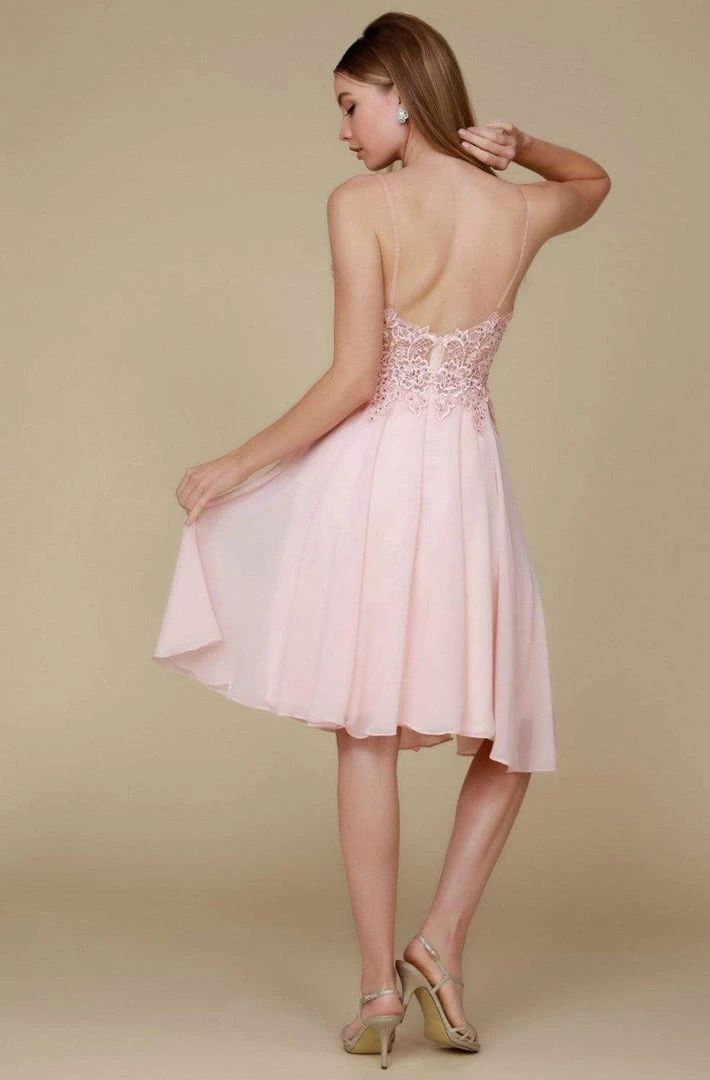 Sparkle in beauty wearing this dress by Nox Anabel A660.Appeals in a sleeveless, V-neckline with fitted bodice designed with beaded lace. Spaghetti straps support the bodice and from the waist features a flowy A-line skirt. Be a vamp in an alluring dress from Nox Anabel.