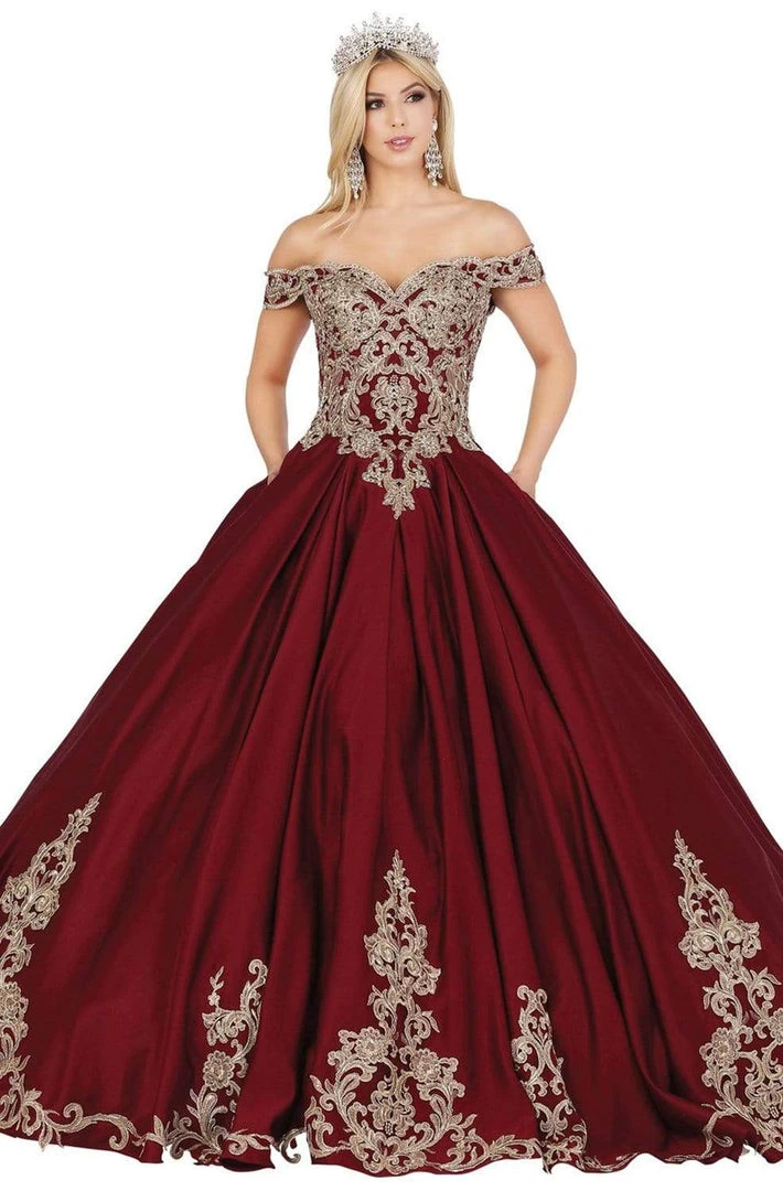 Flourish a chic style that will mesmerize the opulent crowd in this gorgeous gown by Dancing Queen 1498. This beautiful gown fashions an off-shoulder neckline with a fitted bodice. Designed with embroidery, the gown has a lace up back and from the waist begins a ballgown skirt with a mini train finish. Glide into that spectacular black-tie event like an ethereal vision as you flaunt this gorgeous Dancing Queen style. Find more quinceanera dresses!