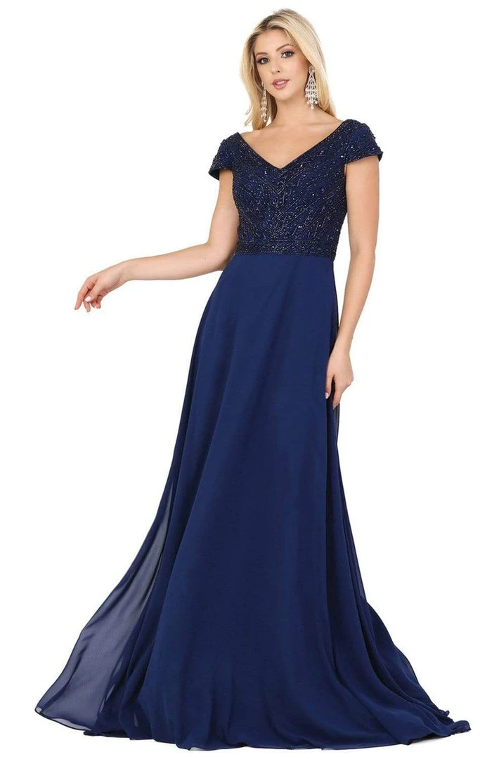 Be adored by the stylish crowd when you arrive in this timeless Dancing Queen 4015 creation. Textured with beadwork on a fitted bodice, this gown flaunts a portrait v-neckline with short sleeves. Designed with a deep v-open back, the chiffon skirt cascades to create a slender A-line silhouette and train. Capture the glamorous feel in this Dancing Queen masterpiece.