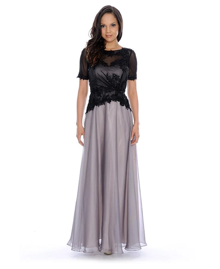 | Details: | Rhinestones, Lace Appliques, Short Sleeves, Asymmetrical Peplum, Illusion Full Back, Full-Length |