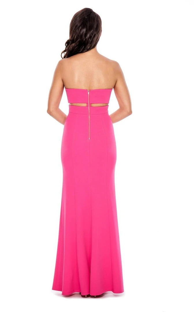 Stand out in every occasion with this daring creation dress by Decode 1.8 183497. The strapless sweetheart neckline is wrapped and ruched with a cutout about your middle. The sheath skirt is comfortable to your hips and flares delicately into a shirred full length hem at your feet. This Decode 1.8 is a stunning look for your evening occasion.