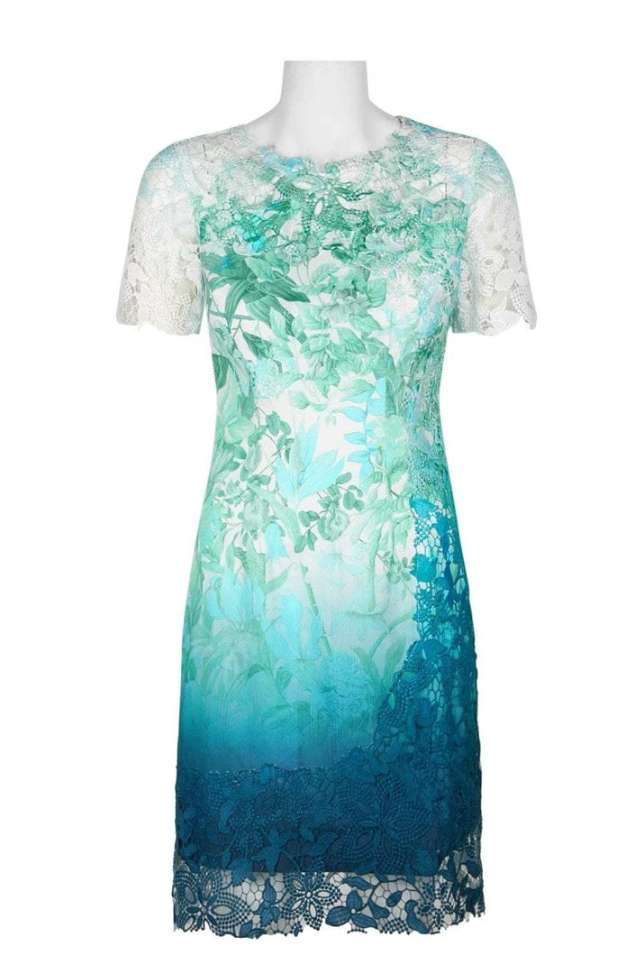 Be strikingly gorgeous in this dress by Elie Tahari E507P607. Brandishes in a jewel neckline with short sleeves. This floral lace dress has a fitted bodice and a back zipper closure. Completing the look is a fitted silhouette and runs at mid-thigh hem. Capture that striking presence and get everyones attention in Elie Tahari.