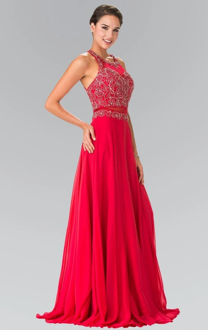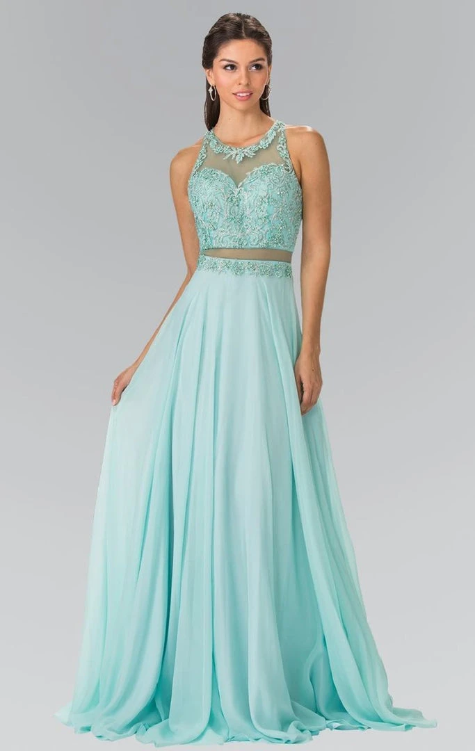 Elizabeth K – GL2347 Embellished Crew Neck Chiffon A-Line Dress