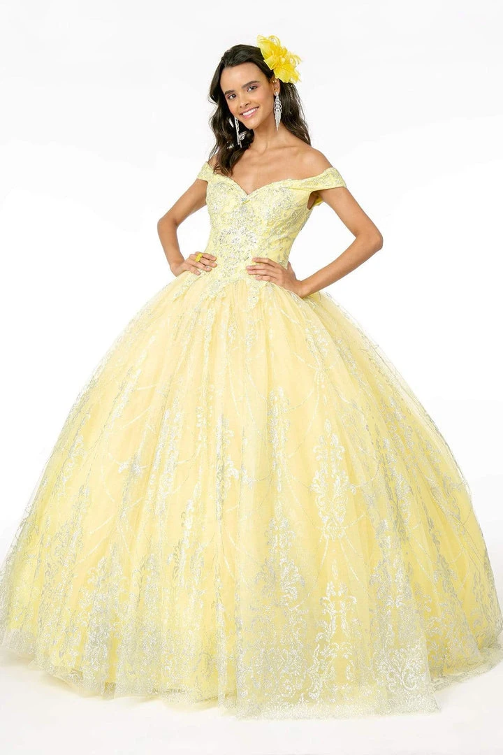 Go for full-on drama in this jaw dropping piece by Elizabeth K GL2910 masterpiece. A folded off-shoulder neckline crowns the fitted bodice, complemented with a mid-open laced up back. The whole dress is designed in crystal embellishments and glitter mesh which provide the shimmering effect. From the basque waist gives way to the pleated ballgown skirt that falls to a full length hemline. Look your absolute best in this majestic Elizabeth K ensemble. Find more sweet 16 dresses!