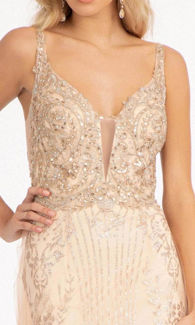 Lavish in the exquisite style and timeless appeal of this mesmerizingly feminine Elizabeth K GL3069 creation. This mermaid silhouette dress is the perfect way to show off your lovely curves! An illusion V-neckline, sheer sides, and an open sheer V-back with exquisite embroidery and sparkle are some of the highlights of this dress. Detachable light mesh layer stretches out from the waist to the floor, creating a beautiful and sophisticated appearance. Deck yourself out with unparalleled flair as you don a style that is immaculately regal with Elizabeth K masterpiece.