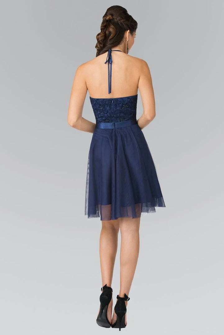 Mesmerize the crowd as you walk in Elizabeth K GS1465. Features a sleeveless, halter neckline with bead embellishments that decorate the bodice. Layered short skirt compliments your gorgeous legs. Make magic in this fantastic dress from Elizabeth K.