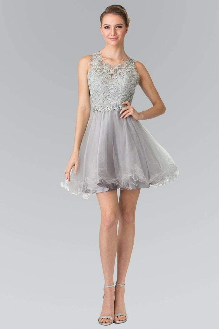 Look amazingly beautiful in this alluring cocktail dress by Elizabeth K GS2375. This sleeveless short dress has scoop illusion neckline in lavish lace overlay bodice. The back features a keyhole. A fine belt with crystal bead accent defines the natural waistline. The skirt flares with layers of Tulle at mid-thigh with curled mini hemline. This Elizabeth K is sure to create a fun and exciting look, the sophisticated way. Find more sweet sixteen dresses!