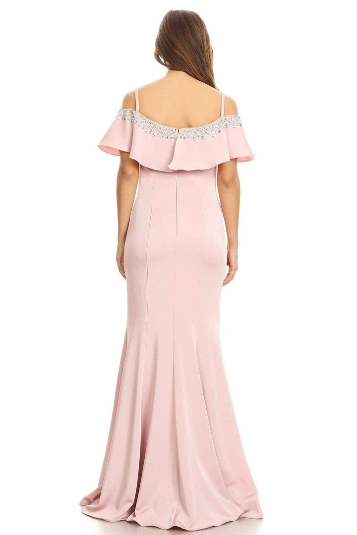 Dazzle everyone by the sheer elegance of this exceptional Eureka Fashion 7333 creation. Draped along the arms with a ruffled overlay festooned with jewels, this beauty captures with an off shoulder neckline supported by straps. Defined with a cold shoulder design and a mid-open back, the bodice is contoured along with its softly draping mermaid silhouette and a train. Look striking in this breathtaking Eureka Fashion masterpiece.