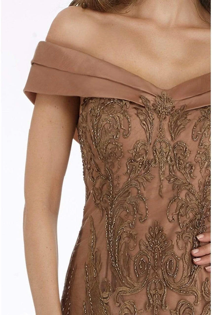 Promote attention-grabbing style in this stunning look from Feriani Couture 18900. Shows off with an off the shoulder neckline with fitted bodice styled with a zipper closure. The dress is adorned with embellishments and flourishes a full length sheath skirt. This Feriani Couture dress is perfect for any formal evening.