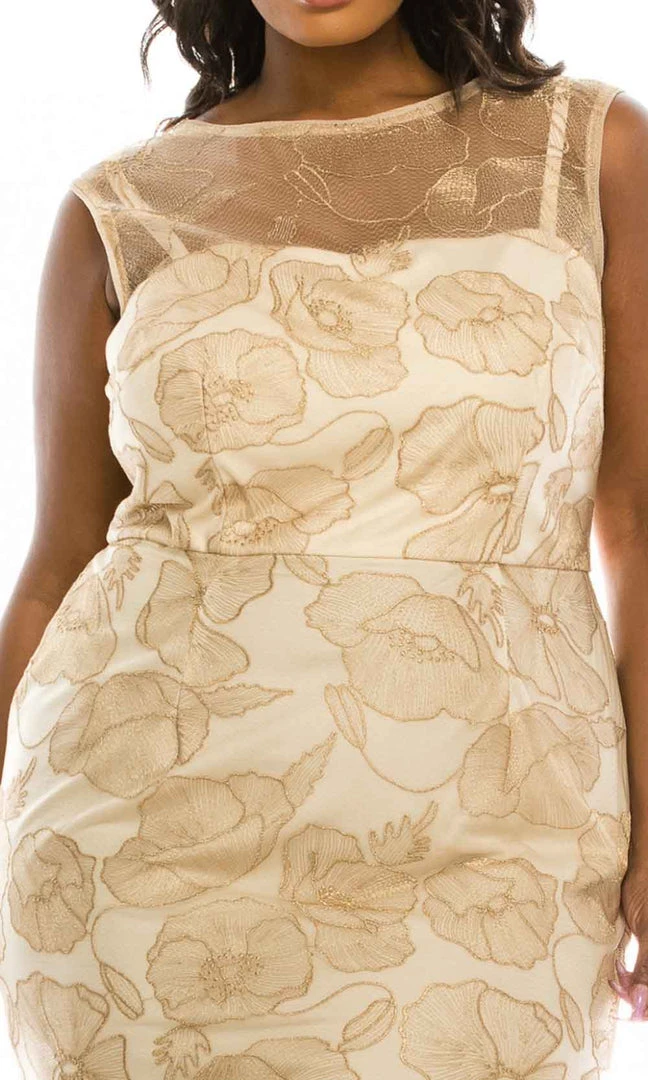 You will be an enchanting beauty in Adrianna Papell AP1E203566W. This sleeveless evening gown dress features an illusion bateau neckline and an illusion back, and metallic embroidered floral patterns all-over. This Adrianna Papell will definitely make you feel special!