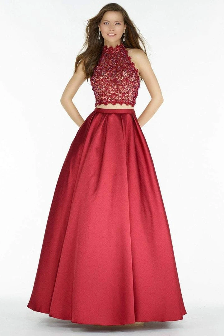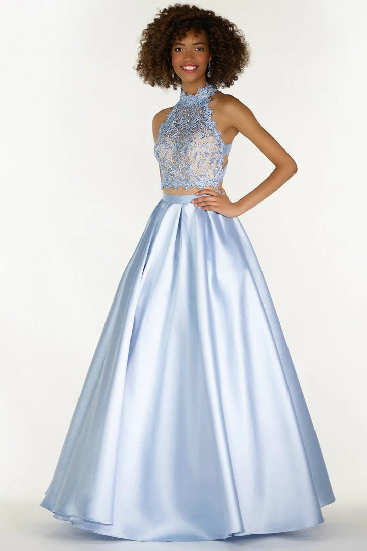 Full mikado skirt, lace halter crop top with a beautiful strappy back.