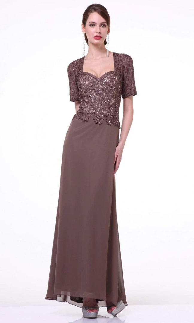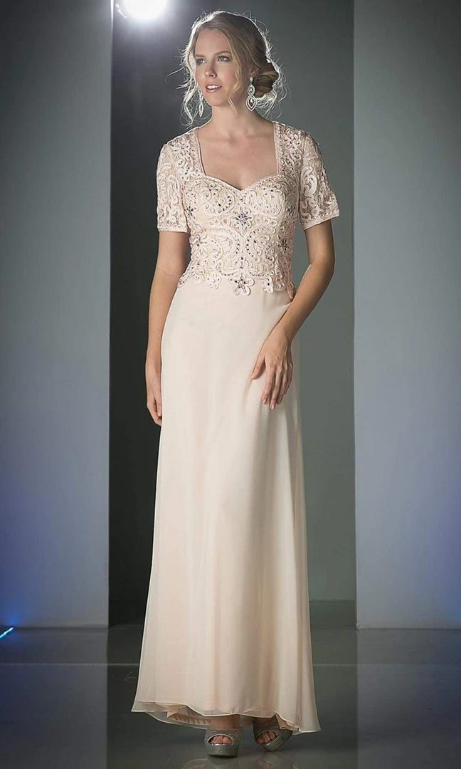 Feel dainty and feminine in this enchantingly designed dress by Cinderella Divine 1942. Shows off in a sweetheart neckline with short sleeves. The bodice is designed with gorgeous embroidery and the skirt forms a full length sheath silhouette. Be the center of attention in this glamorous Cinderella Divine dress.