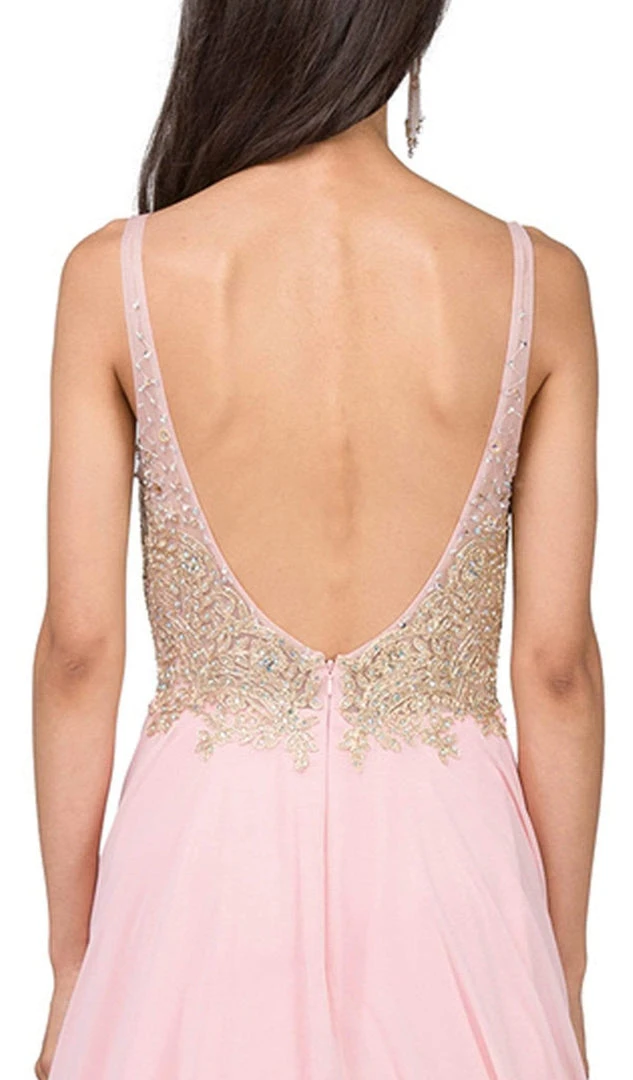 Be strikingly gorgeous with this evening dress. The beaded bodice showcases a plunging sweetheart neckline with sheer inset detail at the bust supported with dainty straps that lead to the sexy open back. Soft pleats flows down the chiffon tailored A-line skirt as it cascades glamorously to the floor. The back has center zipper closure and a dramatic sweep train that finishes the look of this ensemble. Show your sophisticated sense of style in this masterpiece.
