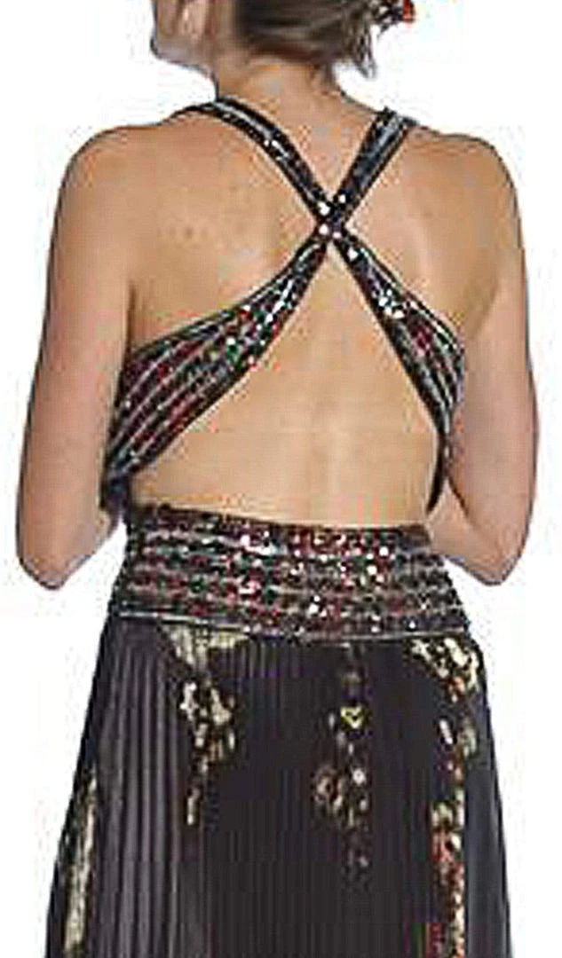 Captivate the crowd as you enter the room in this long dress by Eureka Fashion 2117. Features a sleeveless, V-neckline with thin straps and pleated bodice designed with print charmeuse. The back flaunts a criss cross open detail and flourishes a full length A-line skirt. Eureka Fashion will let you celebrate that divine feminine beauty! Model is wearing Black/Flower color.