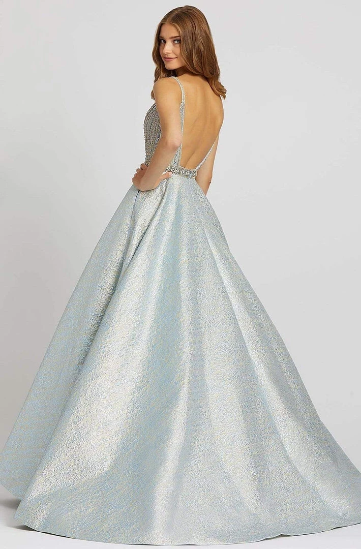 Be a delight of the opulent crowd while looking so exceptional in this chic Mac Duggal Prom 66701 creation. Detailed with a crust of beaded garlands along the sleeveless bodice, this stunner shows a plunging sweetheart neckline with an illusion inset. Defined with a plunging square open back and an adorned waistband, the metallic textured ballgown skirt flows voluminously to the floor with a court train. Come out and sparkle as you unleash the diva in you in this exquisite Mac Duggal masterpiece.