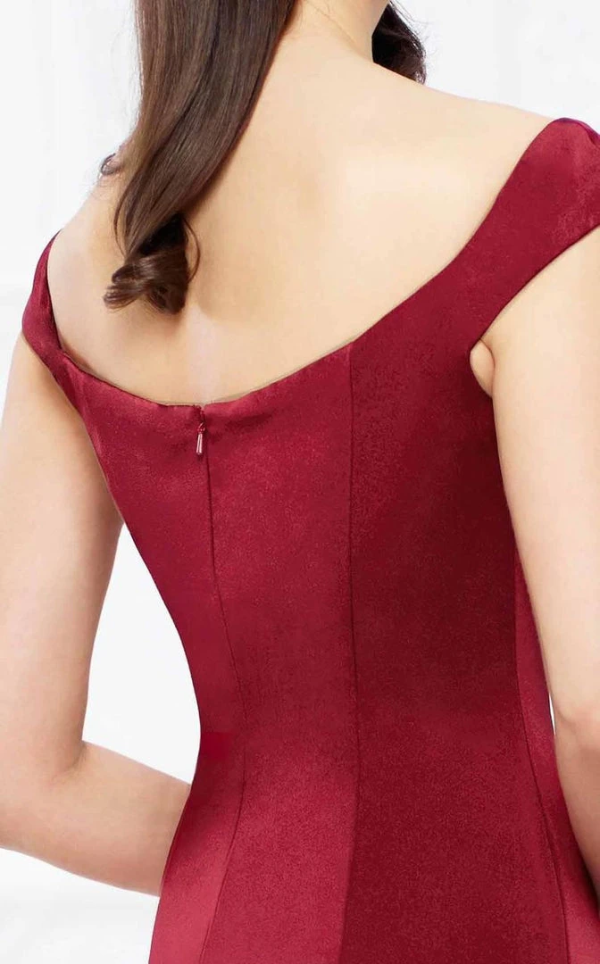 Walk the red carpet in style wearing this stunning dress from Montage 217952 by Mon Cheri. This dress boasts a charming off-the-shoulder neckline with delicate cap sleeves. The bodice has smooth and sleek look for that sophisticated vibe. The skirt flares a mermaid silhouette and is embellished with lace and bead accents for added texture. The gown finishes with a full length hem. Flaunt your figure in this fabulous Montage by Mon Cheri evening dress.