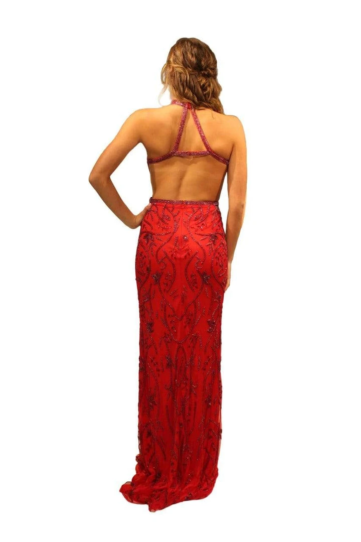 Express yourself in a stylish evening gown from Primavera Couture 3050. The halter design showcases your arms and shoulders. Brilliant accents spiral over the entire length in a queenly appeal. The fitted effect is fully beaded from top to bottom. A marvelous column silhouette style is snug at your hips and ends in floor length hem with a thigh high slit. This Primavera Couture creation definitely parades the elegant and classy style.