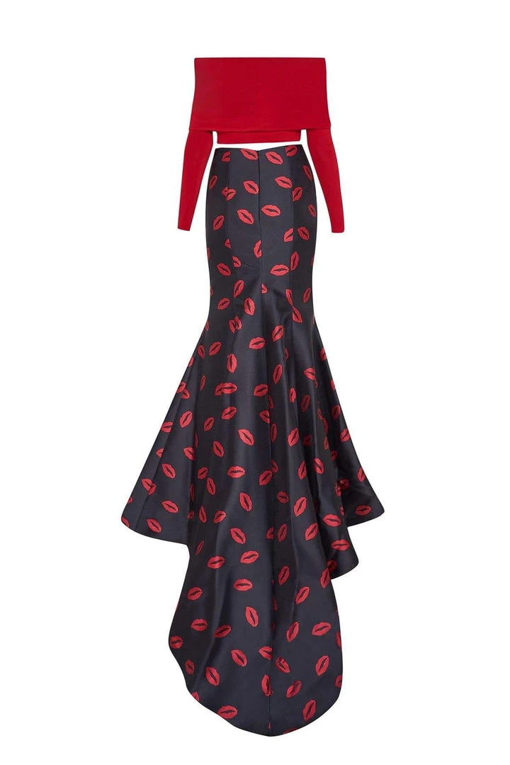 | Details: | Two-piece, Long sleeves, Sweep train, Jersey-Print Taffeta fabric, Zipper back |