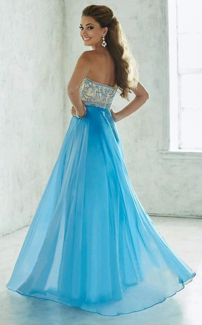 Take their breath away with this stunning evening gown by Tiffany Designs 46024. Lovely crystals embellished the strapless, sweetheart neckline with glamorous glints while fresh floral beadings add folkloric accents along the curvy bust and midriff. Sprinkles of sparkle dust the bodice, and a shimmering band encircles the waist. Sheer sashing adds a misty overlay to the full-length, split skirt. This stellar creation by Tiffany Designs is awesome for prom or for any special night event!