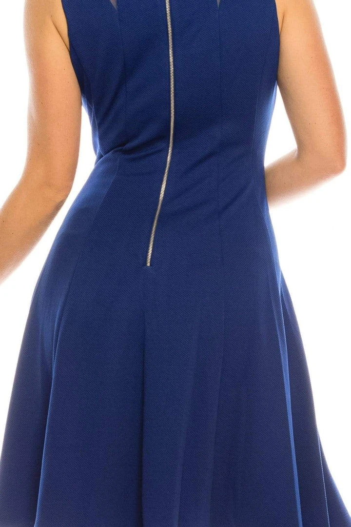 Showcase a trendy flair that flaunts your style sensibilities in this Gabby Skye 57445MG creation. Crafted with sheer cutouts in a vibrant bubble crepe fabric, this dress flatters with a jewel neckline on a sleeveless silhouette. Coupled with a cutout ornate full back with an exposed metallic zipper, the circle skirt glides softly into a knee length hemline. Flourish chic panache at your upcoming soiree in this Gabby Skye masterpiece.