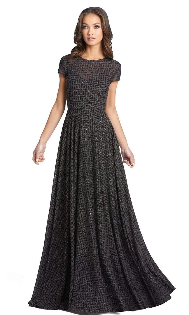 Look fabulous for your event in Mac Duggal 55306. Proudly parades an A-line silhouette with a sweep train finish, this dress features jewel neckline and short sleeves on a perfectly fit bodice. It is patterned all over and uses back zipper closure. Mac Duggal definitely flatters from every angle.