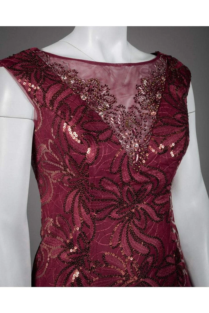 Make his eyes sparkle when you appear in this exquisite Ignite Evenings 3399 creation. Festooned with sequins rendering a stunning floral array, this piece shows an illusion bateau over a v-neckline with intricate beadwork. Framed with cap sleeves and a v-open back, a tailored cut skims over the hips and releases at the knee into a trumpet flourish around the feet. Be ready for that chic event in this glorious Ignite Evenings masterpiece.