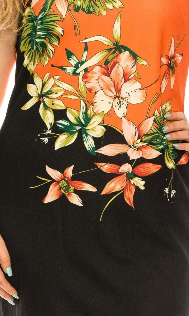 | Details: | Sleeveless, Floral Printed, Two Tone, Mid-Thigh Length, Full Back, Back Zipper |