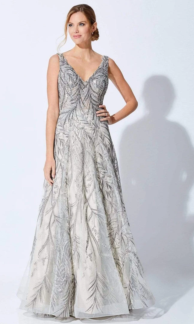 Look brilliant for the big party in this Ivonne D by Mon Cheri 221D45 evening dress. This dress highlights a V-neckline in a bead embellished bodice. The skirt reveals an A-line silhouette while the back shows a V back with back zipper closure. Envision the ideal evening in this Ivonne D by Mon Cheri creation. Model is wearing Taupe/Multi-Color.