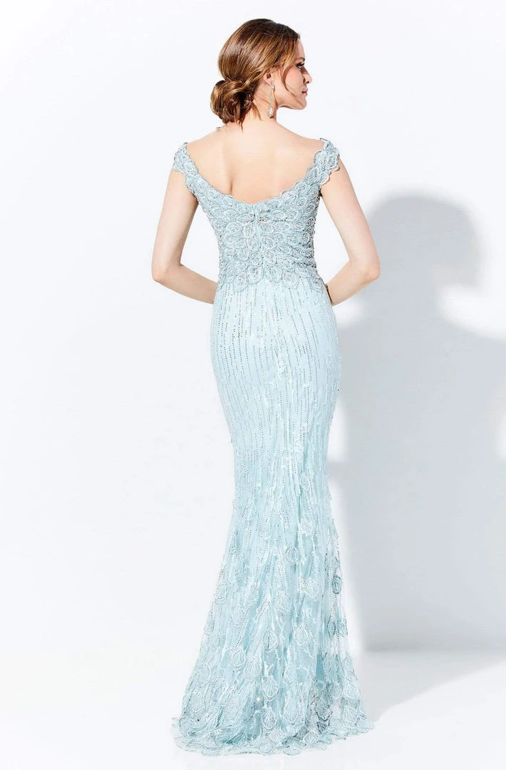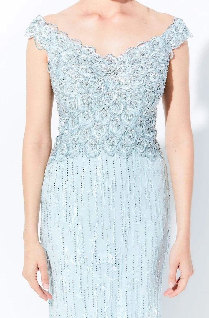 Mesmerize everyone in this stunning Ivonne D by Mon Cheri 120D09 evening dress. Designed in lace embroideries, the fitted bodice features an off-shoulder neckline, complemented with a scoop back. Stone accents and 3D embroidery decorate the skirt sheath skirt as it falls to a full length hemline. Matching lace shawl included. Promote attention-grabbing style in this fabulous Ivonne D by Mon Cheri dress. Model is wearing the Water color.