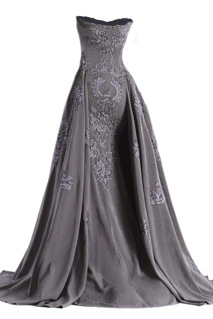 | Details: | Strapless, Embroidered bodice, A-line skirt |