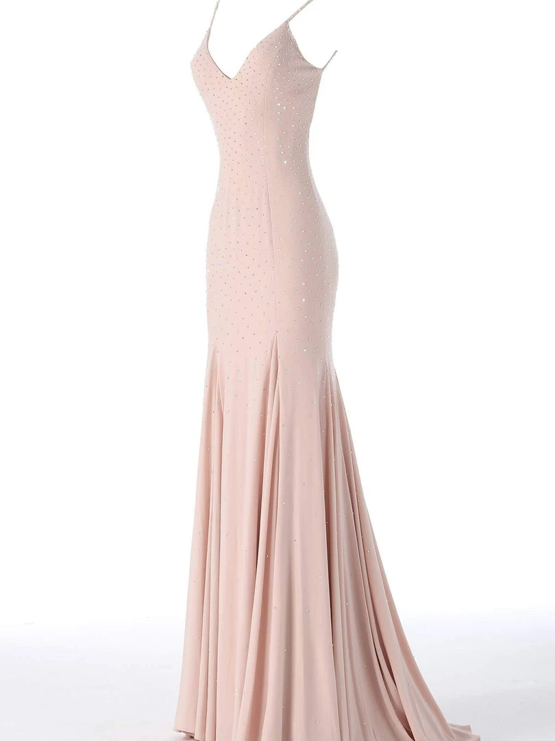 | Details: | Jersey Fabric, Beaded, Spaghetti straps, Low cut open back, Back zipper closure, Godet mermaid skirt |