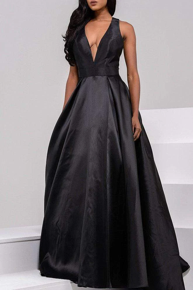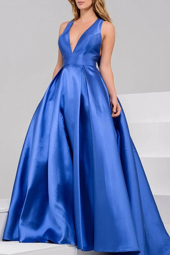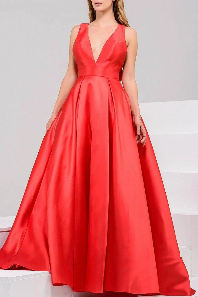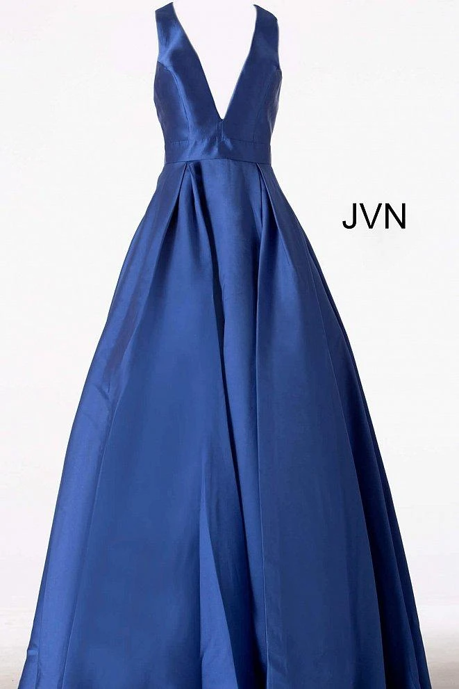 V Neck Mikado Prom Ballgown with Pleated Skirt JVN47530