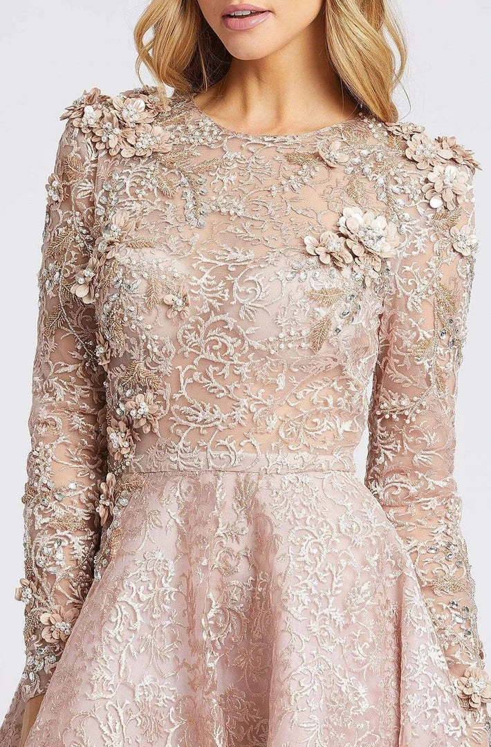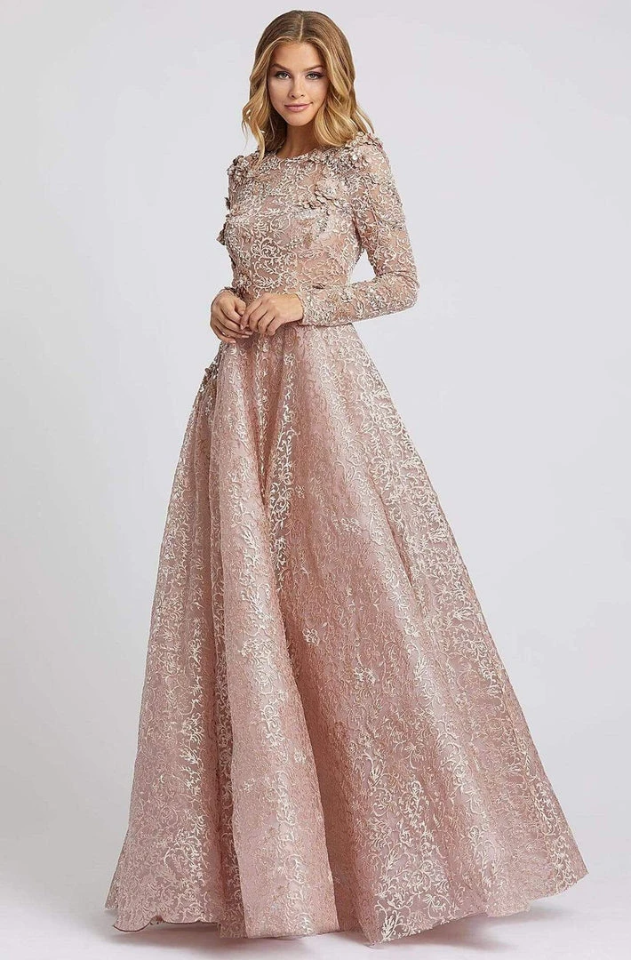 Make your debut in a red carpet dress from Mac Duggal Evening 11121. This embroidered dress brandishes in a jewel neckline with long sleeves. It has a fitted bodice and from the waist begins a full length A-line skirt. Get a timeless and trendy look in a new design from Mac Duggal.