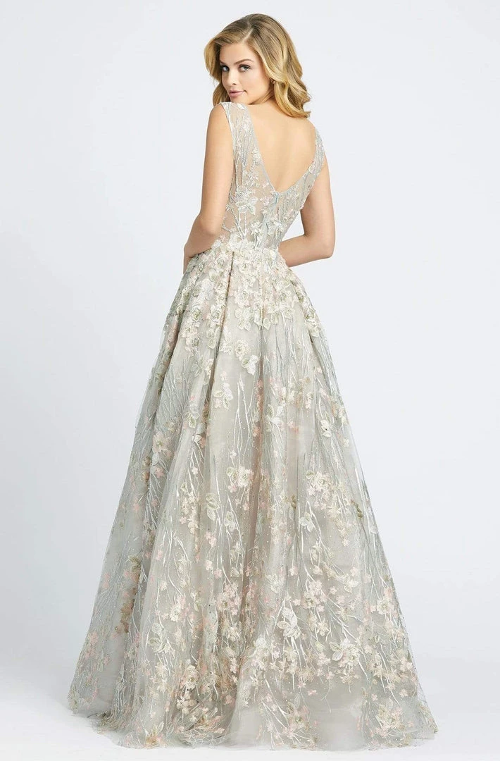 Showcase your femininity in this absolutely attractive evening dress by Mac Duggal 20131. Flawless amount of multi-colored embroidered flowers along with beading beautify the whole ensemble as the fitted bodice features a plunging V neckline with sheer inset detail at the bust, mirrored with a V back. Fabulous pleats cascades the a-line skirt as it ripples to a full length hemline. Decorate a dreamy evening in this wonderful Mac Duggal creation.