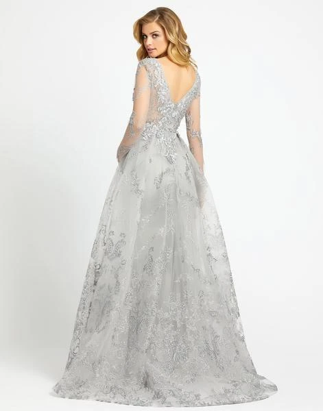 | Details: | Beaded Embroideries, Sheer Inset Detail at the Bust, Fitted, Sheer Long Sleeves, Floor Length Overskirt |
