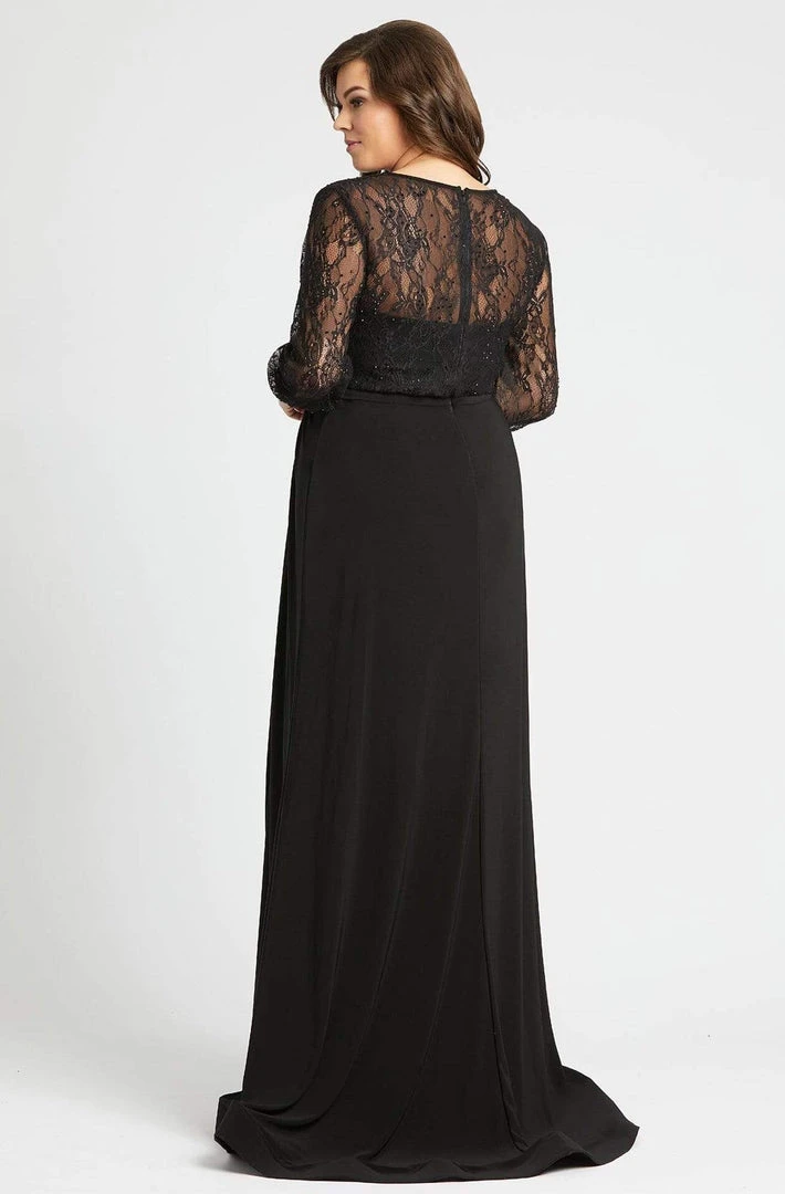Fantasize a night of eloquent style and poise at your black-tie event while wearing this charming Mac Duggal Fabulouss 67143. The bodice has French lace up to its sleeves that gives you a see-through effect. The exquisite floor length skirt gives you a classy and fabulous skirt flowing into a romantic train. Also, the skirt has slit that shows your legs. Mac Duggal Fabulouss’s creation is an absolute breathtaking look.