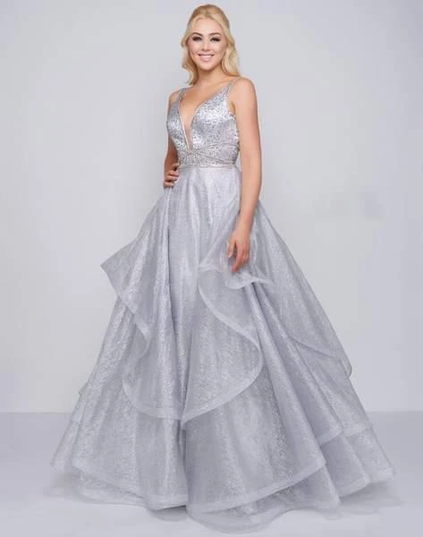 Make a statement without guile in this intricately ornate Mac Duggal Prom 30589 creation. Creatively embellished with shimmering sequins and jewels, this remarkable piece flaunts a plunging sweetheart neckline with an illusion inset. Adorned with a metallic crisscross belt around the empire waist, this ensemble shows a backless design as the dramatic skirt flutters in contrasting tiers of ruffles that completes at a full-length hem. Breathe out a dreamy quality into an idyllic night in this Mac Duggal masterpiece.