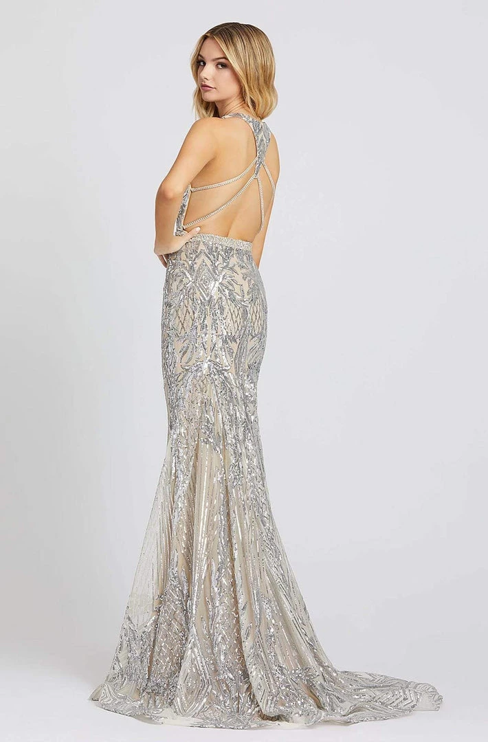 Mesmerize everyone in this charming dress by Mac Duggal 67327. This dazzling dress fashions a sleeveless, deep V-neckline with sheer inset at mid-bust. The fitted bodice flaunts a strappy open back. The skirt fits at the thighs and flares at the bottom to a sweep train finish. This Mac Duggal style is a sure standout on your next evening social event.