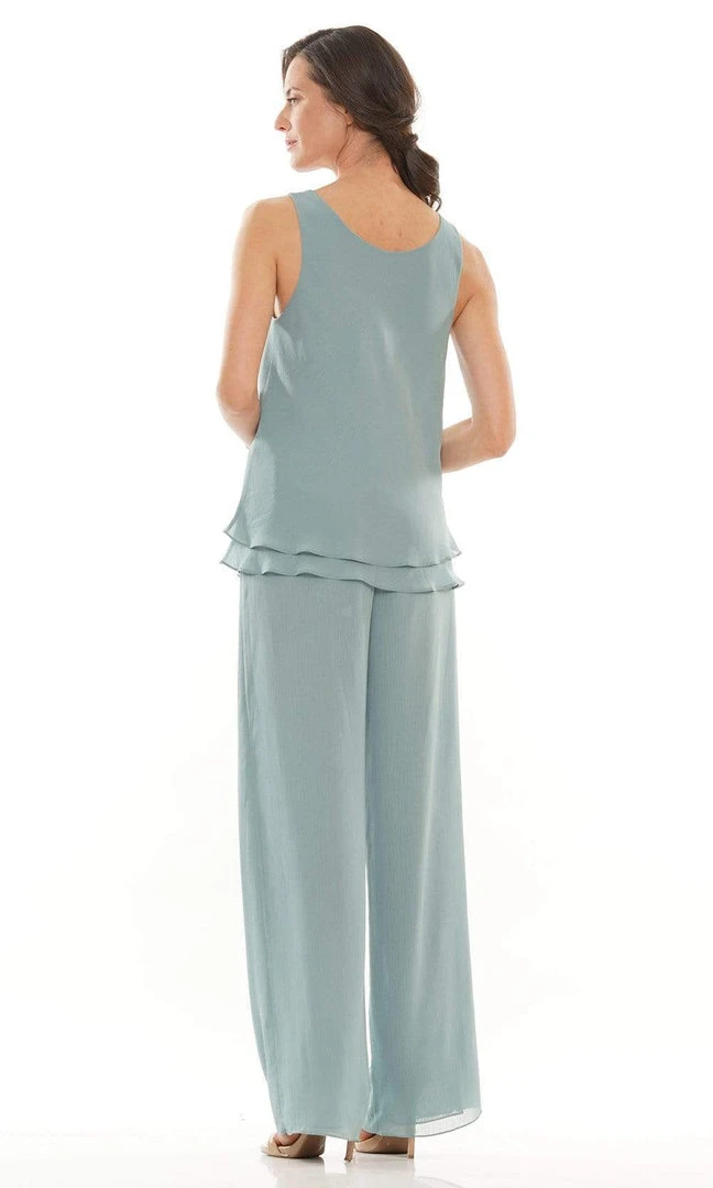 Wow everyone in this sophisticated Marsoni by Colors M304 creation. This pantsuit highlights a scoop neckline complemented by scoop back in a tiered top. This includes a long sleeves jacket with full back to complete the look. Wear this Marsoni by Colors to complete the look for your next event.